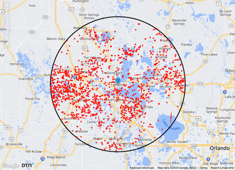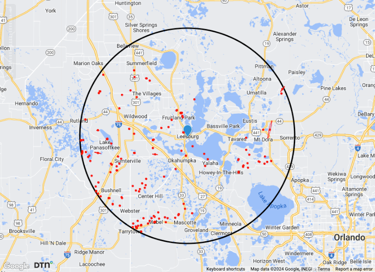 Lightning Archive Report – 20-mile radius from Leesburg International Airport (KLEE)