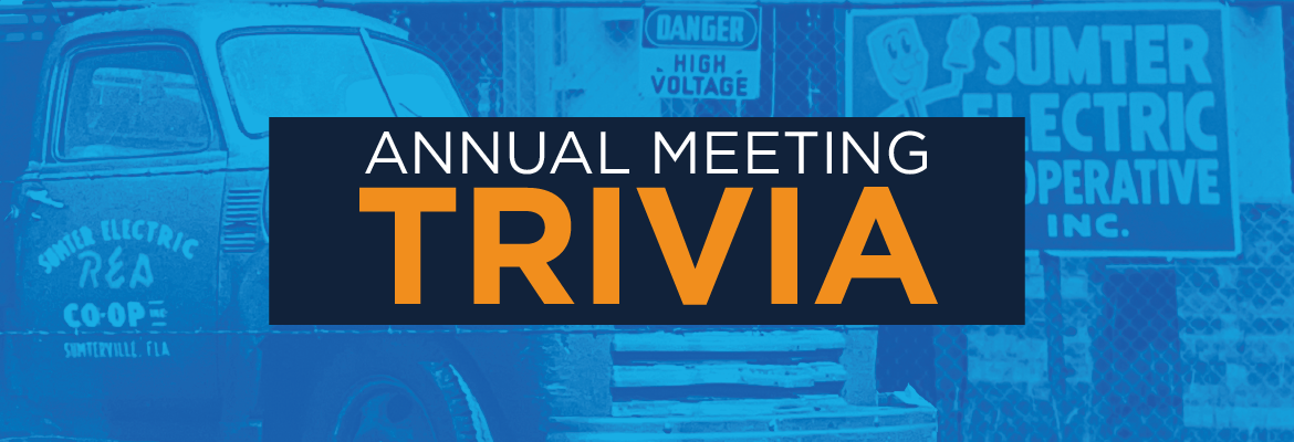 NEED SOME HELP FINDING THE ANSWERS? No problem! Visit SECOEnergy.com > Your Co-op > Annual Member Meeting and watch the recorded virtual meeting. You can submit your answers by mail to SECO Energy, P.O. Box 301, Sumterville, FL 33585, or play online. Make sure to submit your answers before June 14th. Winners will be notified by June 21st. GOOD LUCK!