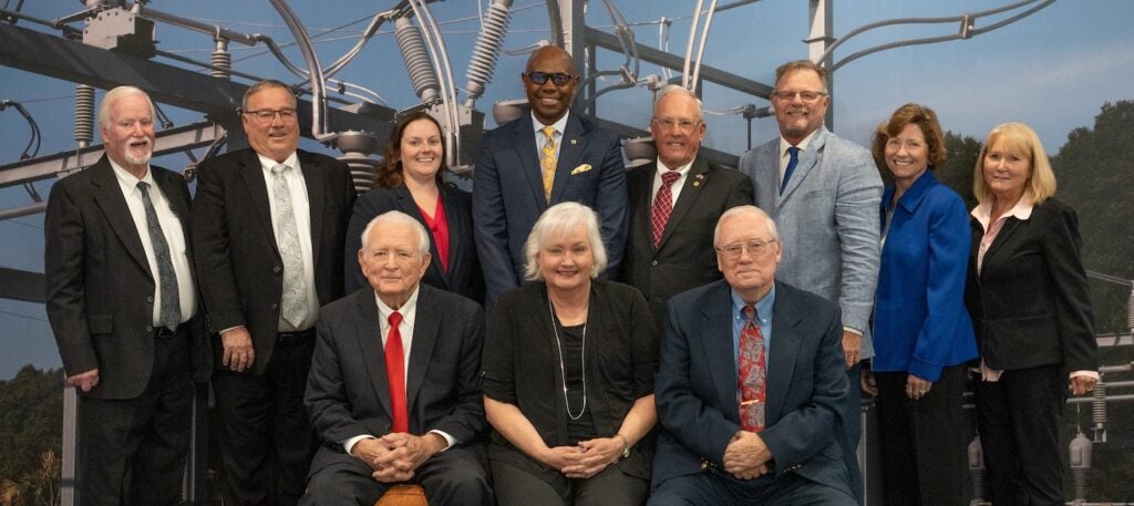 Standing from left: Richard Dennison (District 4), Mike Muffett (District 6), Secretary/Treasurer Morgan Hatfield (District 9), CEO Curtis Wynn, President Gerald Anderson (District 3), Vice President Scott Boyatt (District 1), Shannon Wright (District 5), and Joyce Anderson (District 2). Seated from left: Bill James (District 8), Nora Brown Executive Administrator for the CEO and Board, and Joseph Kusiak (District 7).